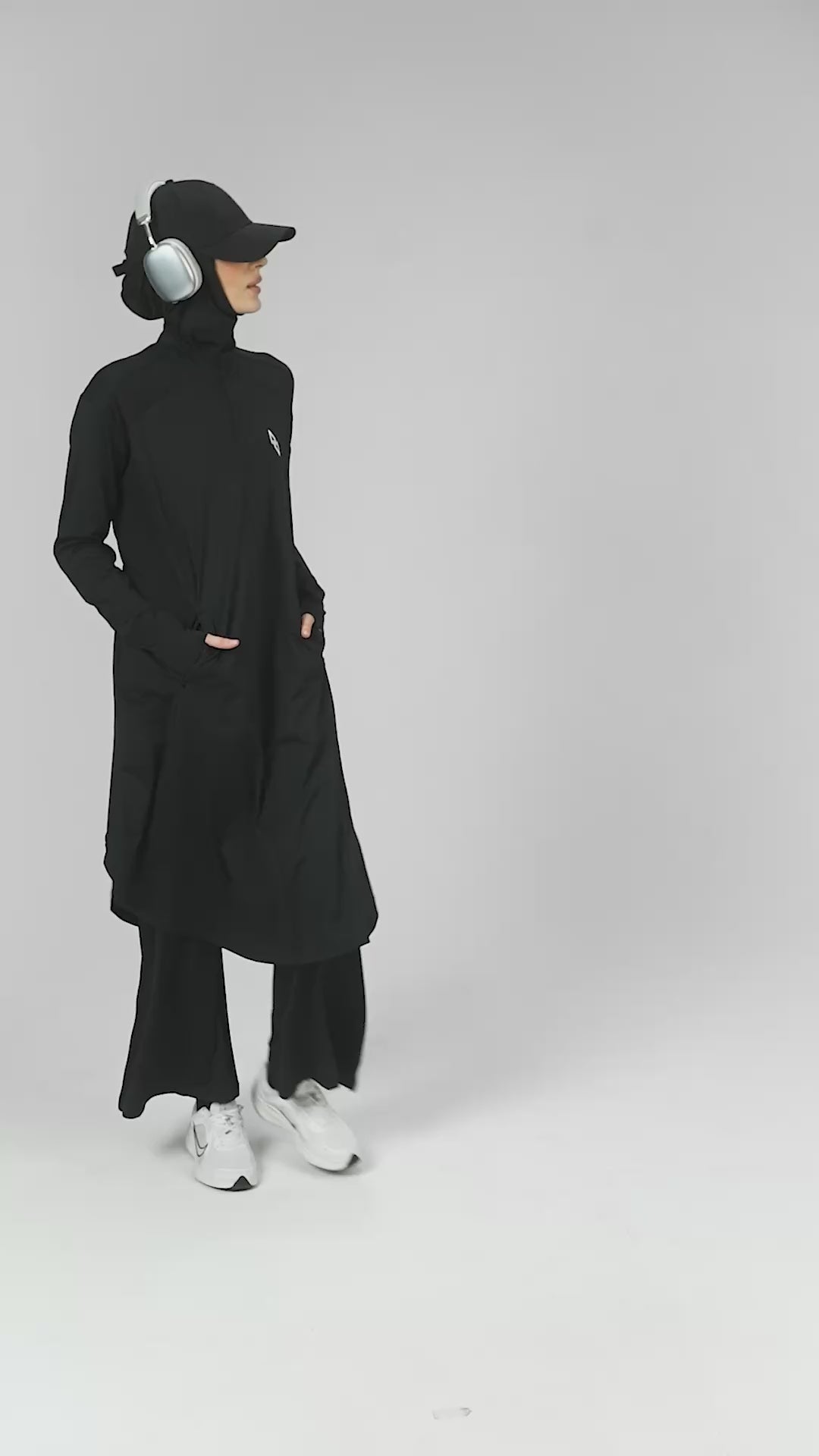 The Unbound Momentum LongLine top redefines modest performance wear. Built for women who require complete shape coverage, this gym-ready longline top delivers lightweight breathability, sweat-wicking performance, and ventilation panels without compromising modesty. Its extended abaya-inspired cut with an adjustable waist offers freedom of movement, sleek style, and total confidence whether in the gym or on the move.