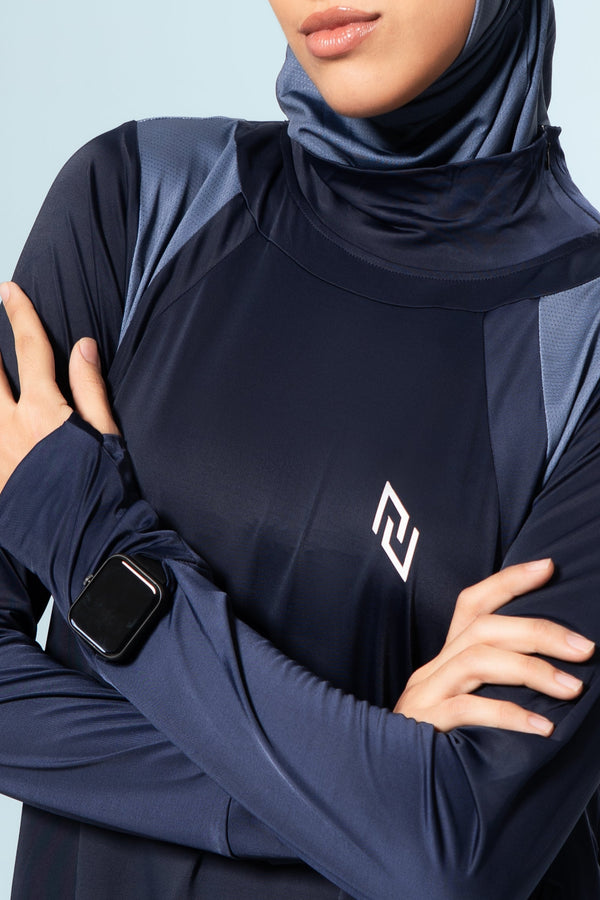 Engineered for intensity, styled for the future. This top is crafted from utterly butter-soft, sweat-wicking fabric with quick-dry technology and integrated ventilation zones keeps you cool even in the heat. With its streamlined, futuristic silhouette, this top redefines modest activewear with performance-driven innovation and sleek style