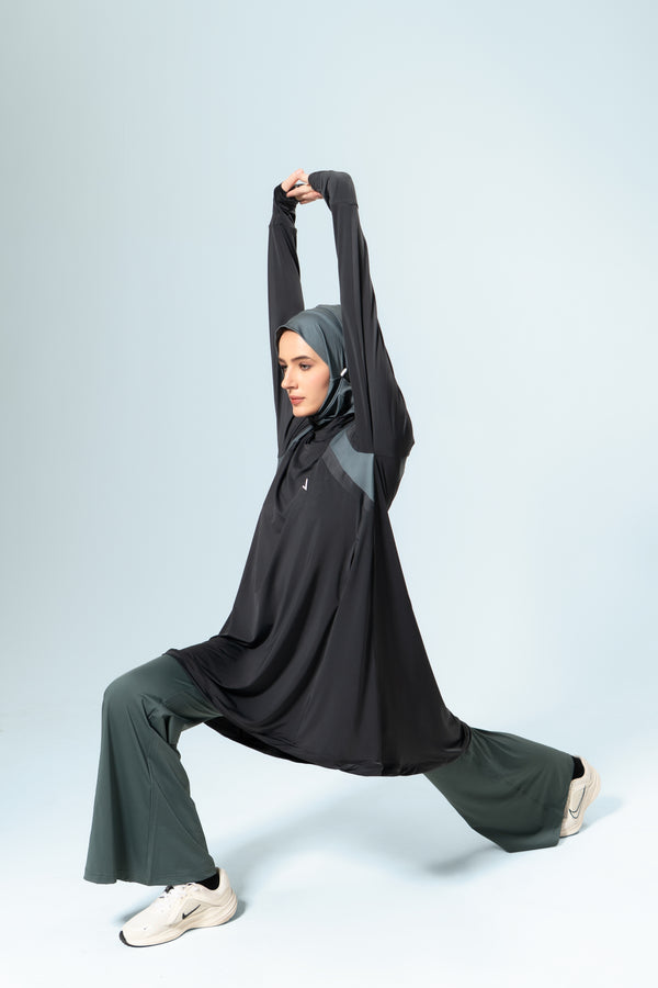 Engineered for intensity, styled for the future. This top is crafted from utterly butter-soft, sweat-wicking fabric with quick-dry technology and integrated ventilation zones keeps you cool even in the heat. With its streamlined, futuristic silhouette, this top redefines modest activewear with performance-driven innovation and sleek style